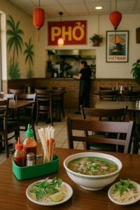 | Phở Bò Tái Chín / Beef Combo Phở | EN: Rare steak & brisket in aromatic beef broth with rice noodles. VI: Phở bò tái chín với nước dùng thơm đậm đà. |